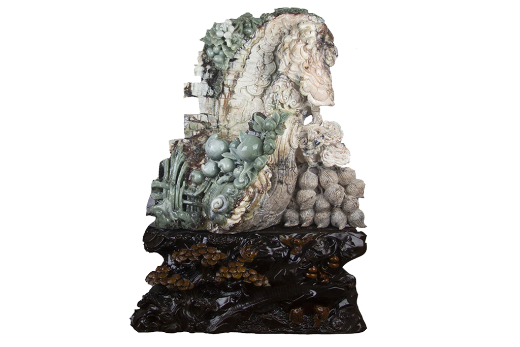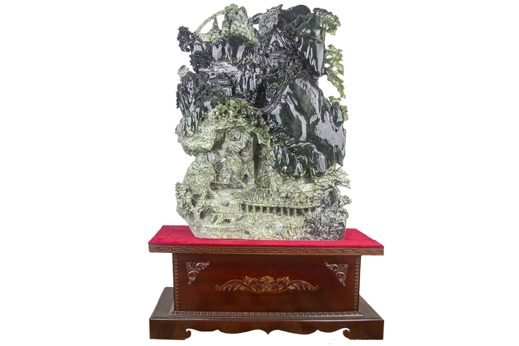 绿翠王,深绿泛乌则为绿翠王。绿翠王色重质腻、纹理细致、漆黑如墨却光洁温润。优质的绿翠王在强光下显现出魅力十足的绿色,绿由墨生,墨且通透,绿翠王的表面下仿佛有生命随着阳光舞蹈。这正是缅甸称其为“情人的影子”的原因。多变的雕刻风格是衡量绿翠王价值的重要指标之一。绿翠王在雕刻过程中需根据原料的种分、水头与颜色的不同而调整雕刻的风格,目的在于突出或增加原料的透明度和颜色。